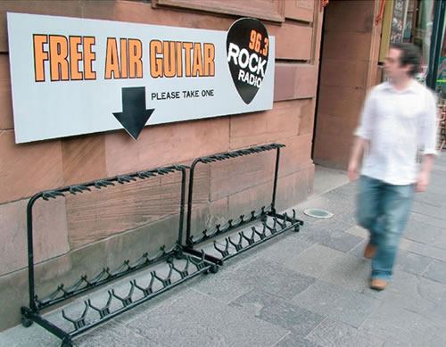 The free air guitar is priceless! That was a great ad by that rock and roll station. Well done! lol