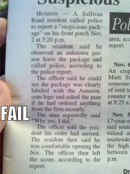 The next photo, of a newspaper clipping, is really hard to believe that it’s true. Everyone freaks out over an Amazon box?!?
