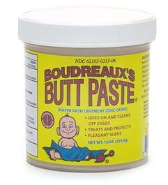Hey moms and dads and people with sore butts! I have some terrific news for you! Remember Boudreaux’s Butt Paste, that amazing new diaper rash ointment product I blogged about many months ago? Some of you asked about free samples and smaller packages… well, guess what! You can get them! Yes! Now you have no excuse to let your baby wail in agony when you ease his discomfort easily with Boudreaux’s Butt Paste!!
